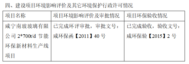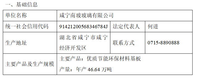 咸宁尊龙凯时人生就是搏玻璃有限公司2020年环境信息公开表