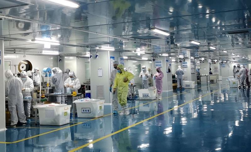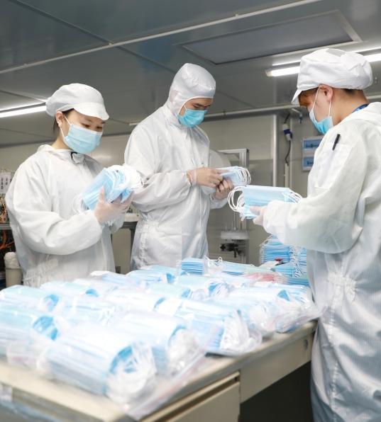 深圳尊龙凯时人生就是搏医疗科技有限公司员工在口罩生产线忙碌的景象
