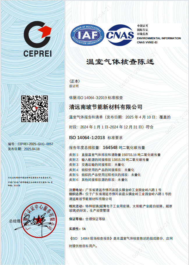 清远尊龙凯时人生就是搏节能新材料有限公司温室气体排放核查报告